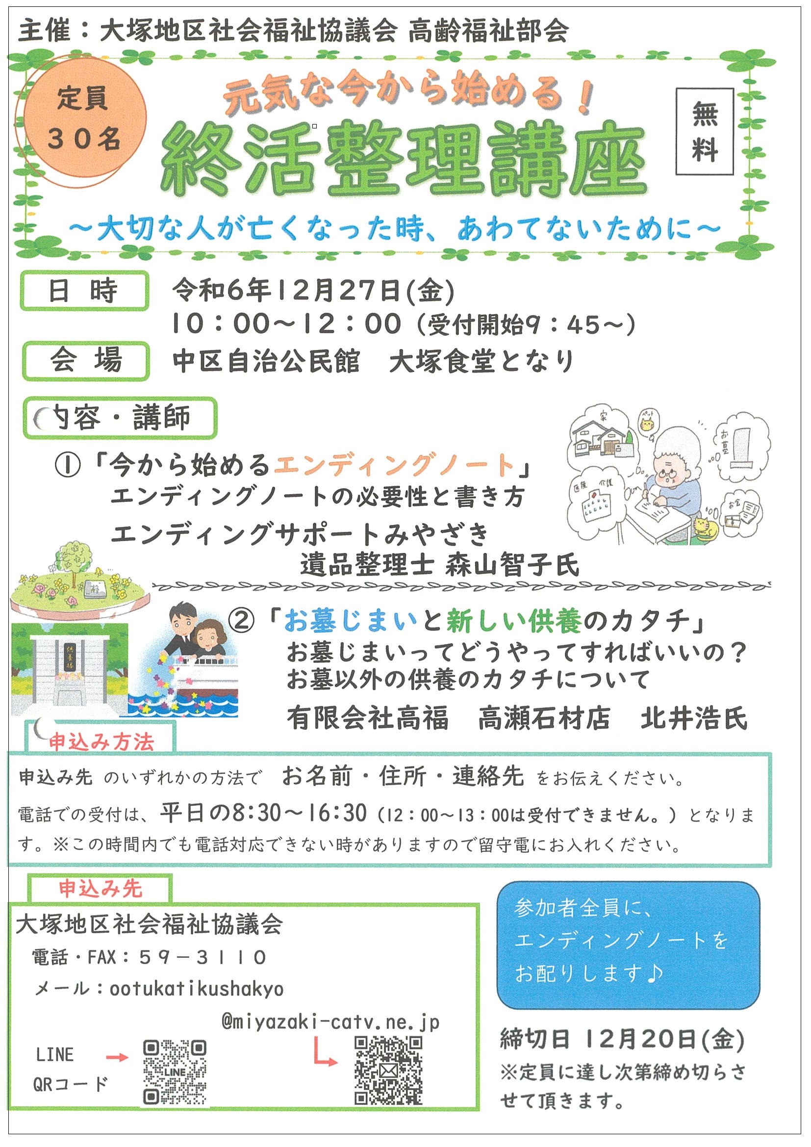 大塚地区社協さんでは、定期的に 「終活整理講座」を開催されており、終活に関係する
