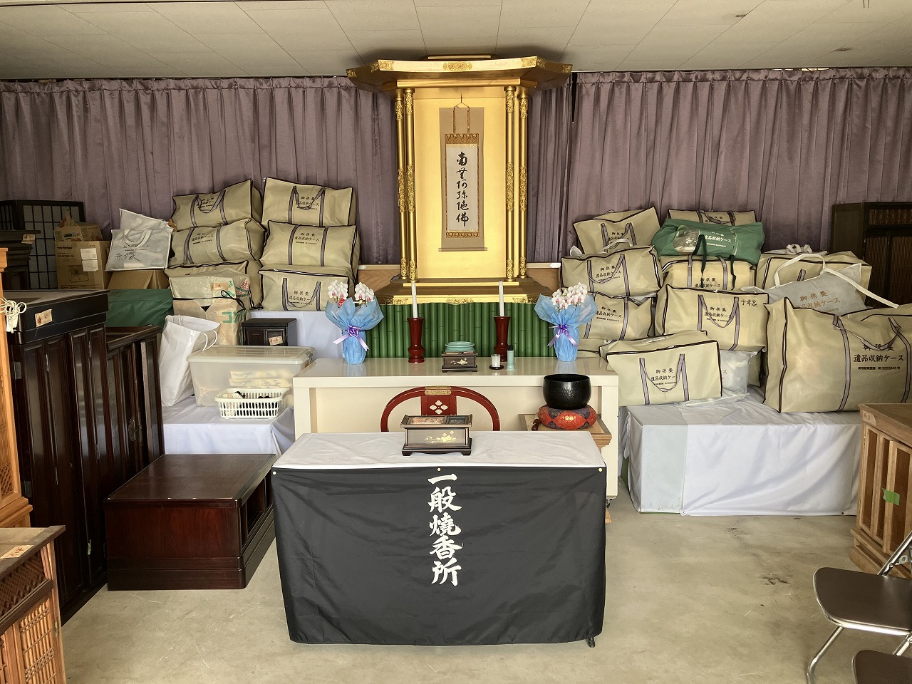 浄土真宗 本願寺派 蓮光寺 ご住職による 読経の後 廃棄物処分業者で回収を行いました。