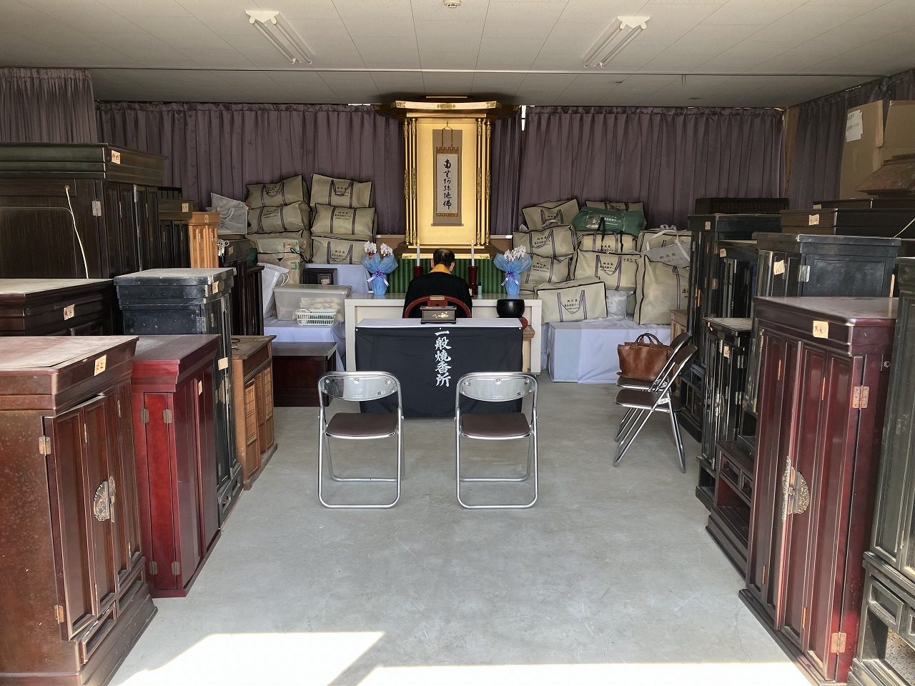 ご自宅から一旦、保管センターまで移動し、年に数回に分けて供養祭を行っております。