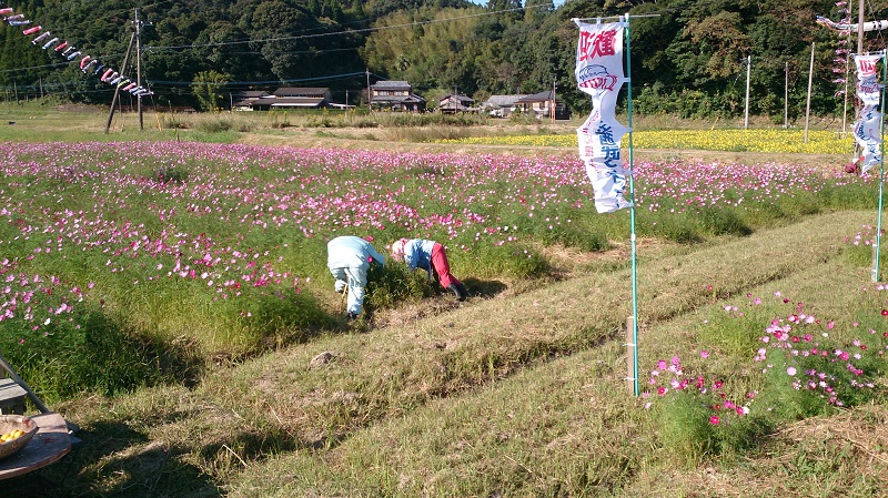 コスモスとひまわりのコントラストにも、感動しました。