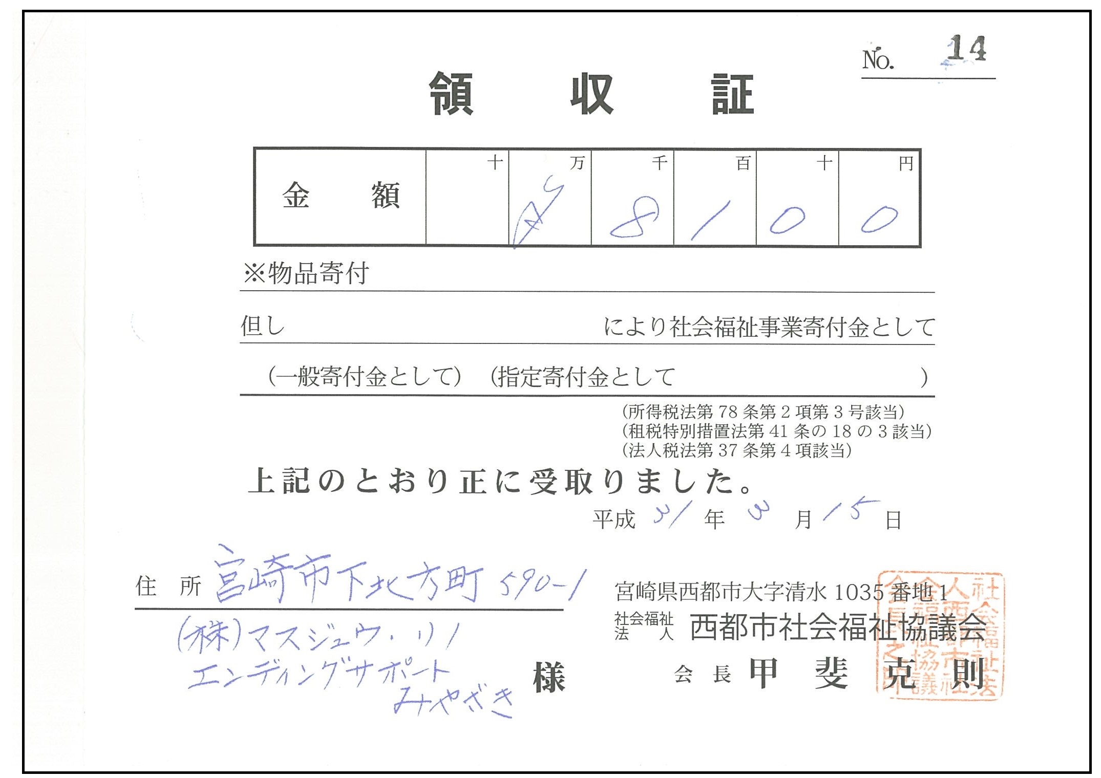 寄附させていただきました。