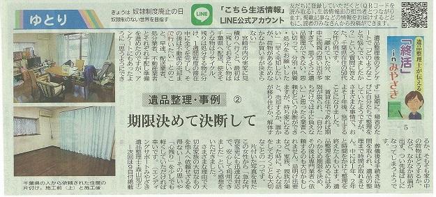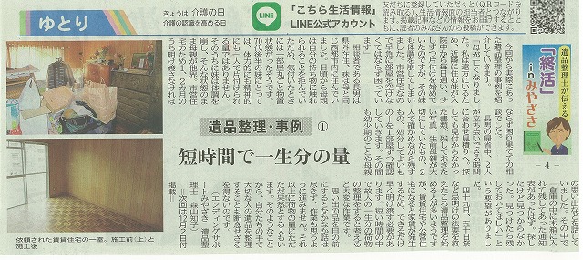 宮崎日日新聞 「終活」inみやざき~遺品整理士が伝える~