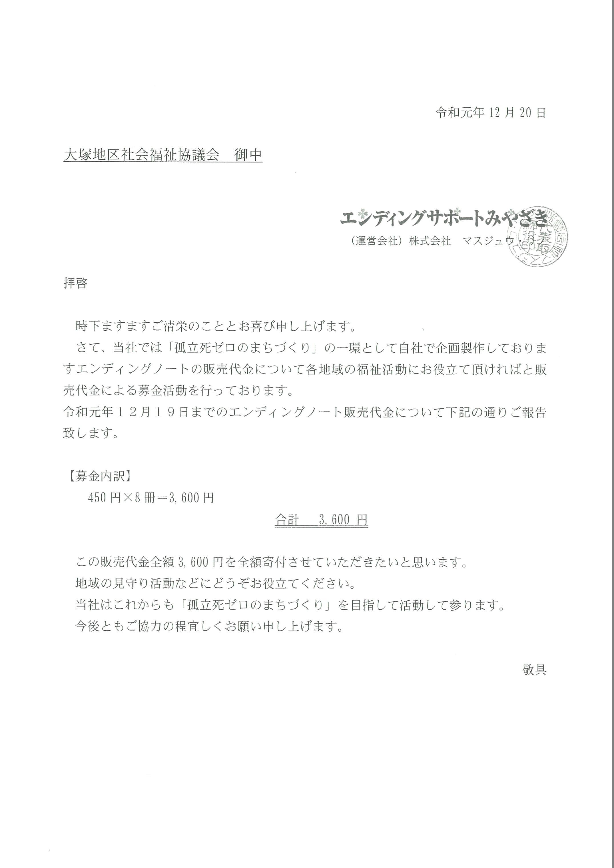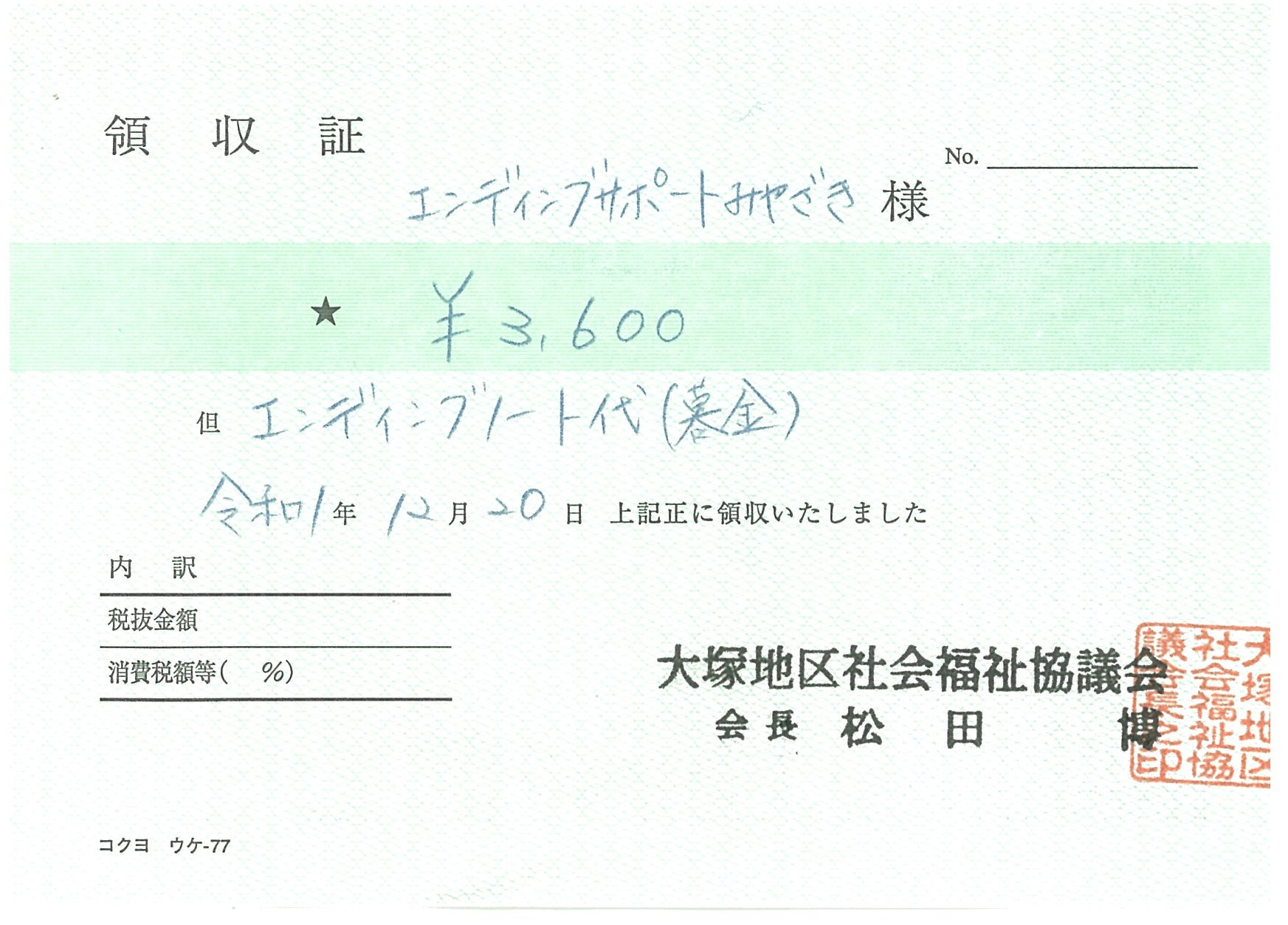 大塚地区社会福祉協議会に設置してありますエンディングノートの販売代金を