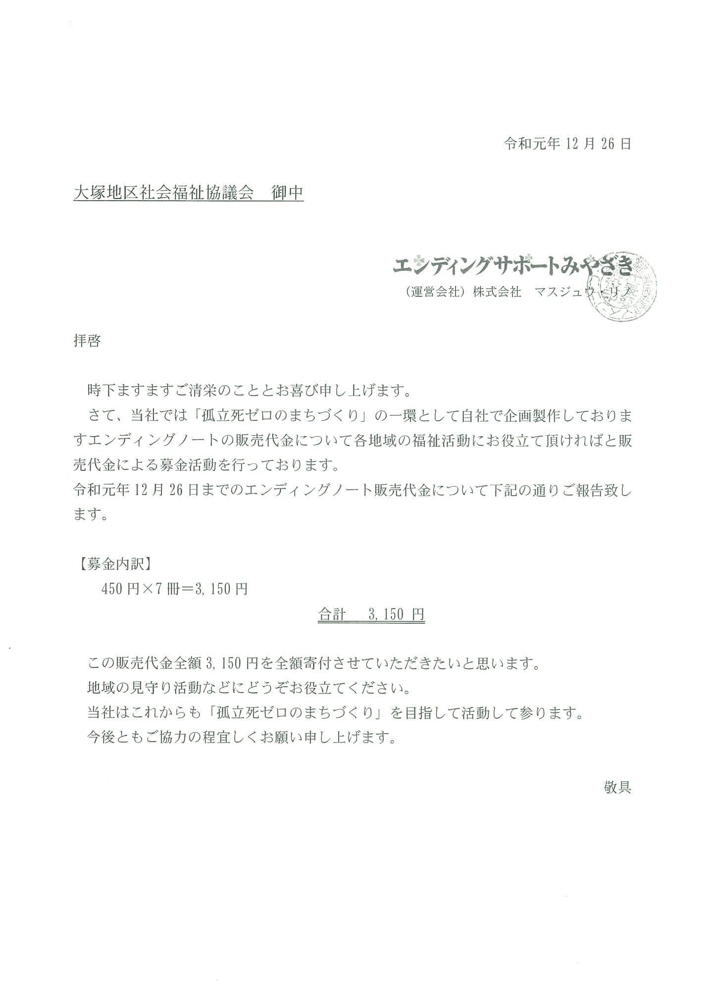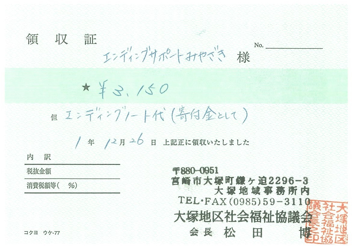 大塚地区社会福祉協議会に設置しておりますエンディングノートの販売代金について