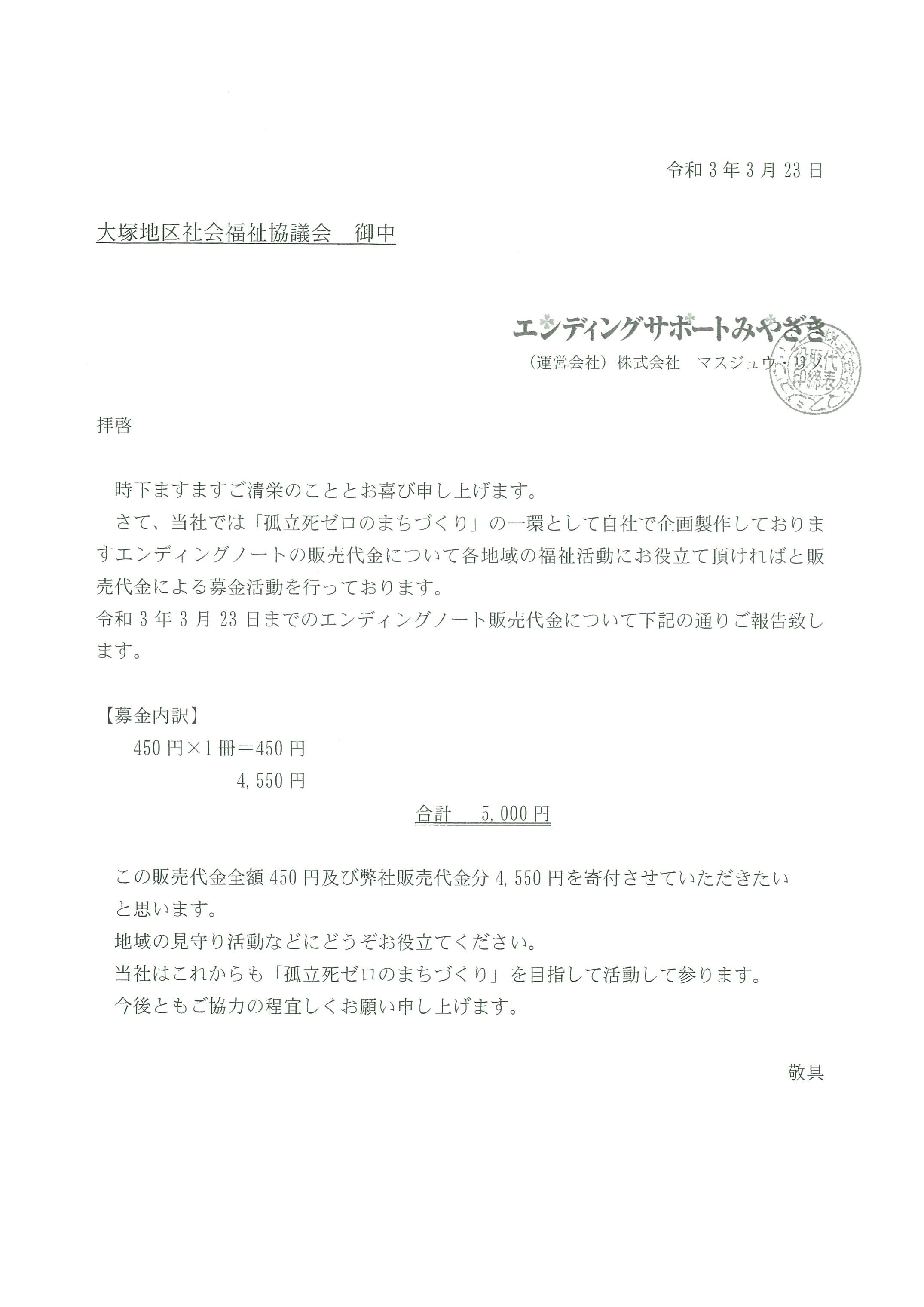 大塚地区社会福祉協議会に設置させていただいておりますエンディングノートの販売代金について