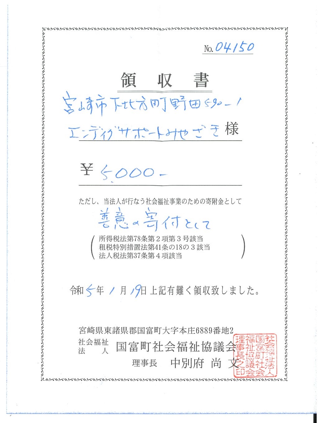 お役立ていただければと各地区の社会福祉協議会へ 全額寄付させていただいております。