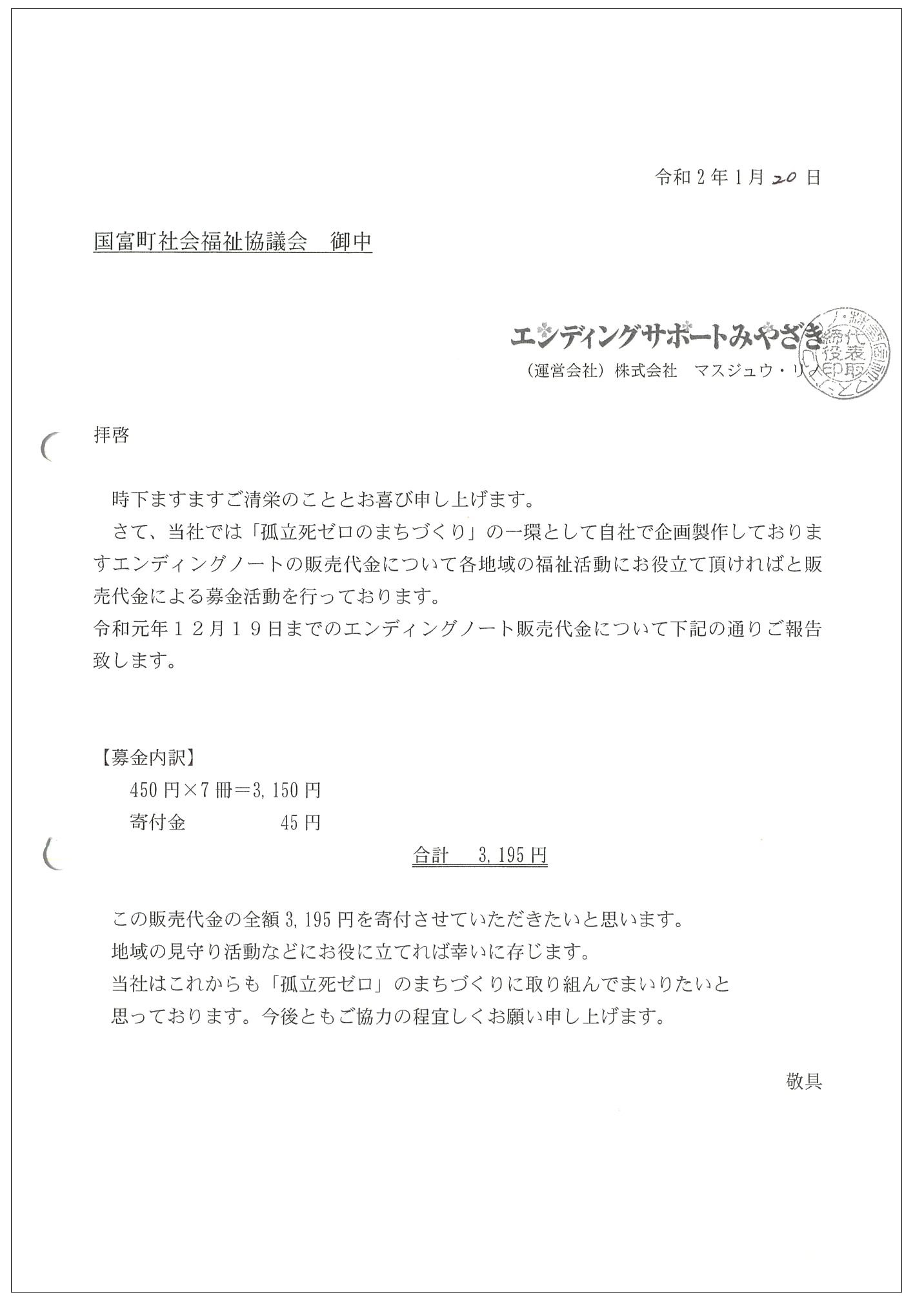 販売代金について 全額寄付させていただきました。