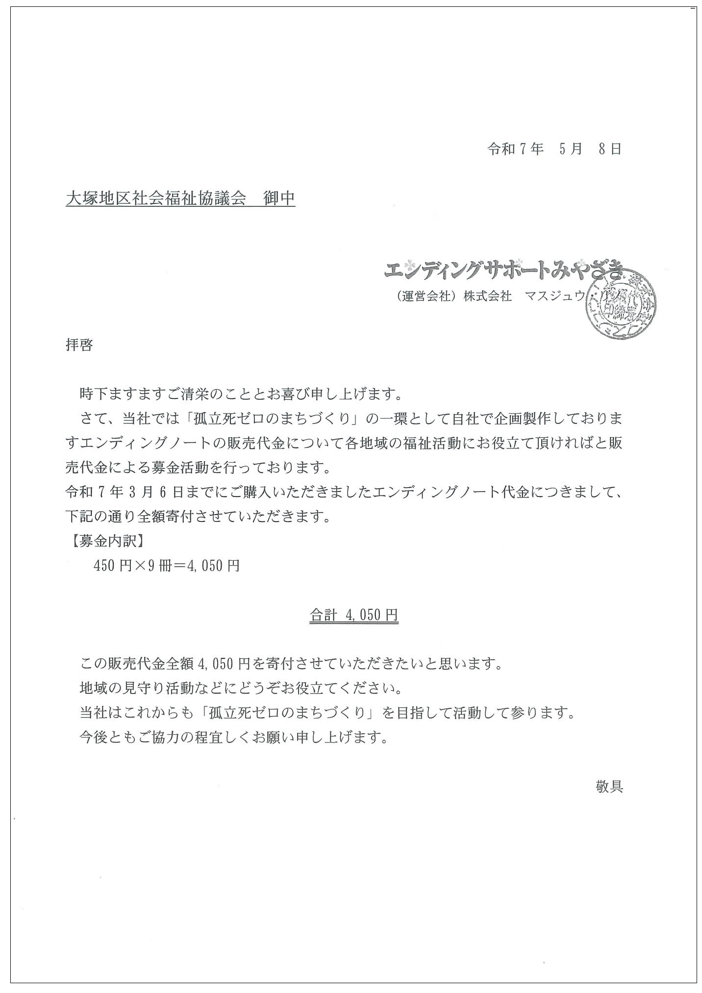 お役立ていただければと各地区の社会福祉協議会へ 全額寄付させていただいております。