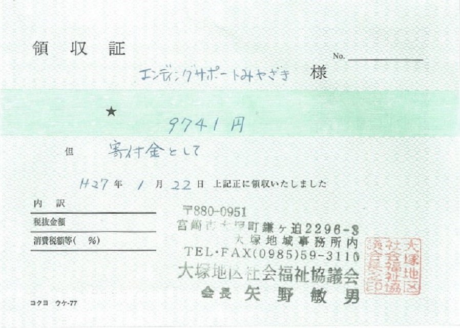 平成27年1月22日(木)大塚地区社会福祉協議会にエンディングノート売上金の寄贈を行いました。