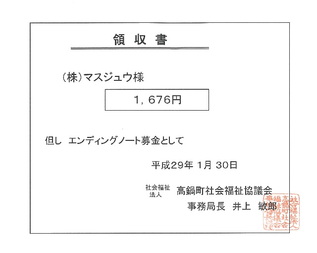 平成27年1月30日(金)高鍋町社会福祉協議会にエンディングノート売上金の寄贈を行いました。